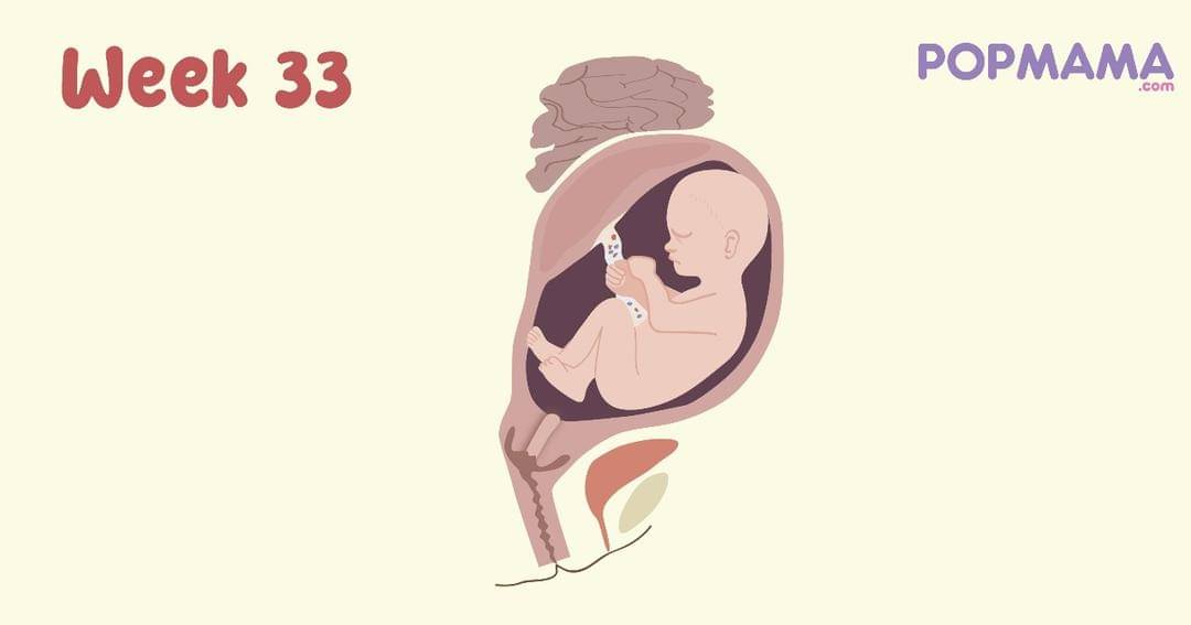 Tingginya akan bertambah lebih kurang 2,3 sentimeter pada pekan ini dan beratnya akan bertambah hingga pada hari H mencapai hampir dua kali piat dari beratnya sekarang. Dengan bayi sebesar itu di dalam rahim, cairan ketuban mencapai jumlah maksimal. Hal ini menjelaskan mengapa setiap pukulan dan tendangan terkadang membuat Mama amat sangat tidak nyaman.
