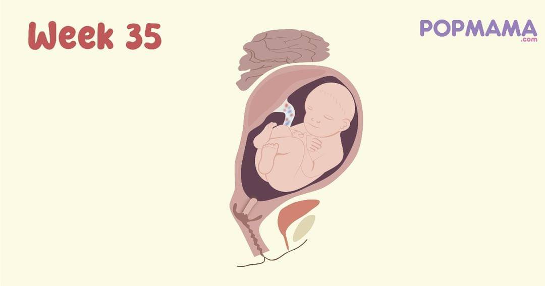 Saat ini, pantatnya mungkin sudah berada di atas. Hampir semu bayi sudah berada di posisi kepala di bawah dan pantat di atas di dalam rongga pinggul pada minggu ini atau dalam waktu dekat. Ini merupakan hal yang baik karena akan lebih mudah bagi Mama jika kepala bayi keluar lebih dulu pada saat dilahirkan.