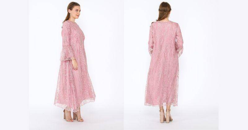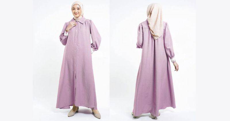 Elzatta Gamis Crinckle Renda Al-Bukhari ini memiliki desain kerah kemeja menyerupai tunik yang memberikan kesan rapi dan modis. Salah satu pilihan warnanya adalah dusty pink yang cocok untuk dikenakan saat lebaran.