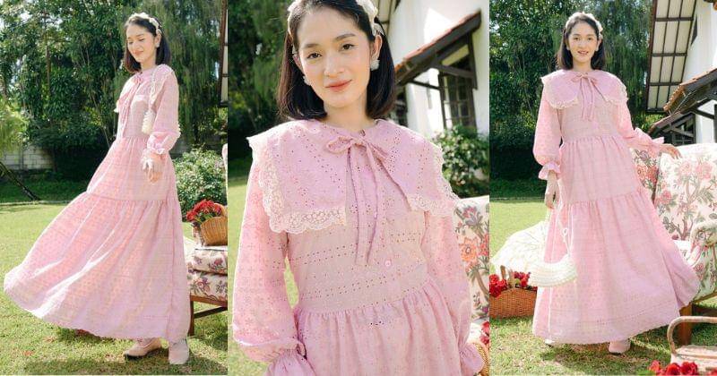 Brand asal Bandung, Nyonya Nursing Wear juga memiliki koleksi baju ibu hamil yang cocok dikenakan saat lebaran. Salah satunya ada Ayesha Dress berwarna pink yang super cantik dan mewah.