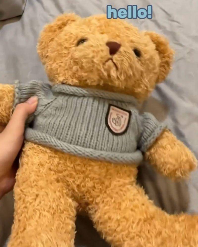 "Jadi di salah satu tangan teddy bear nya ada tombol ngerekam suara yang tiap kita pencet sambil tahap dia ngerekam suara apapun," sambung sabrina.
